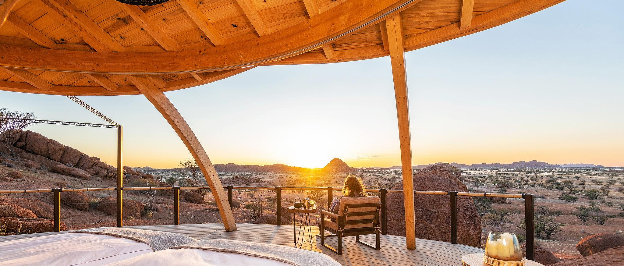 3 nights on a fully inclusive basis including a star bed experience, nature drives & walks, solar e-biking and desert-adapted wildlife tracking from £1,750 per person.