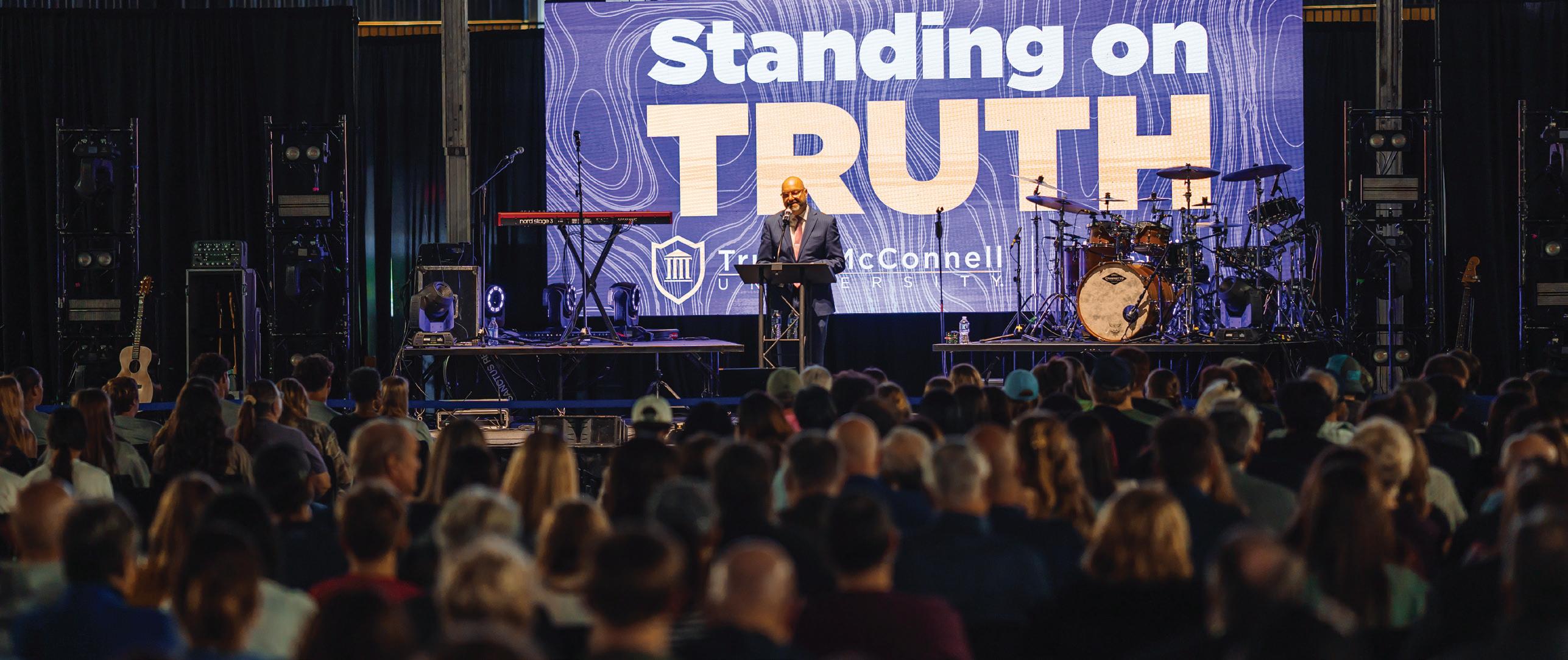 JOIN US: Though the battle for Truth looms large in our culture, faithfulness always trumps fear. Your faithfulness to outfit the next generation of Truett McConnell University students will change the tide of the war against darkness – for your family and future generations. Jesus shows us that when we stand on the Truth, our identity and purpose become clear. Imagine a world in which celebrated biologists, emergency room nurses, and second-grade public school teachers celebrate and cling to Judeo-Christian principles. Imagine the impact of an army of godly men and women who listen to God’s voice and bear witness to the Truth in their everyday spheres of life - courthouses and classrooms, hospitals and homes, ballparks and businesses. We can build a name, brand, and legacy in this lifetime, but Truth stands forever. It is only when we invest in the spiritual realities of God’s Kingdom that our legacy will remain safe with Him. As one marked by the Truth, will you join us in shaping the next generation of Truth speakers and servants of the King?