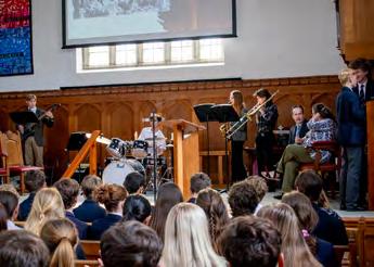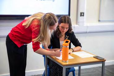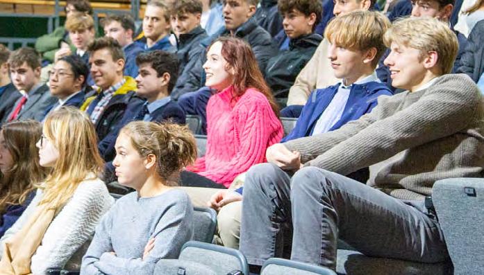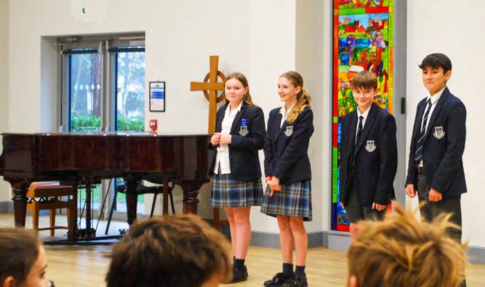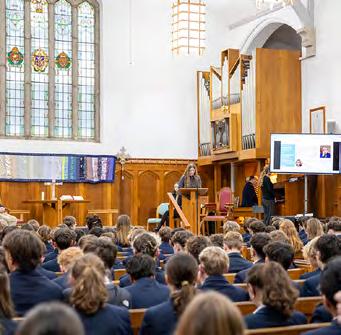 Each fortnight, the Head Girl and Boy Team take turns leading wholeschool assemblies, and they meet for a weekly breakfast meeting with the Head to discuss school matters. These sessions have served as a valuable sounding board for initiatives such as the Yondr phone policy and other school-wide changes.