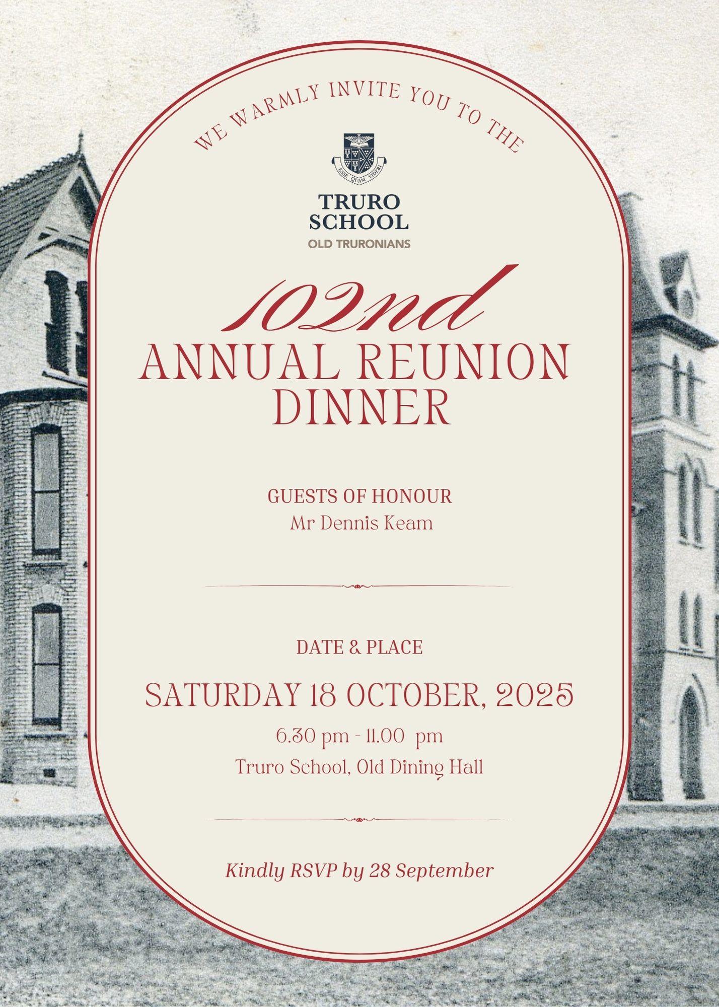 Mark your calendars for Saturday 18 October 2025 and join us for an unforgettable evening at the 102nd Annual Reunion Dinner. Gather friends from your year group as this is a celebration of shared memories, school spirit, and lifelong connections.