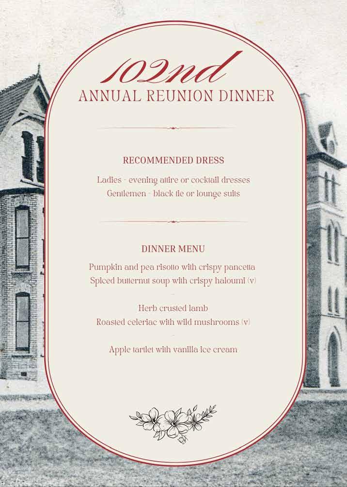 Mark your calendars for Saturday 18 October 2025 and join us for an unforgettable evening at the 102nd Annual Reunion Dinner. Gather friends from your year group as this is a celebration of shared memories, school spirit, and lifelong connections.
