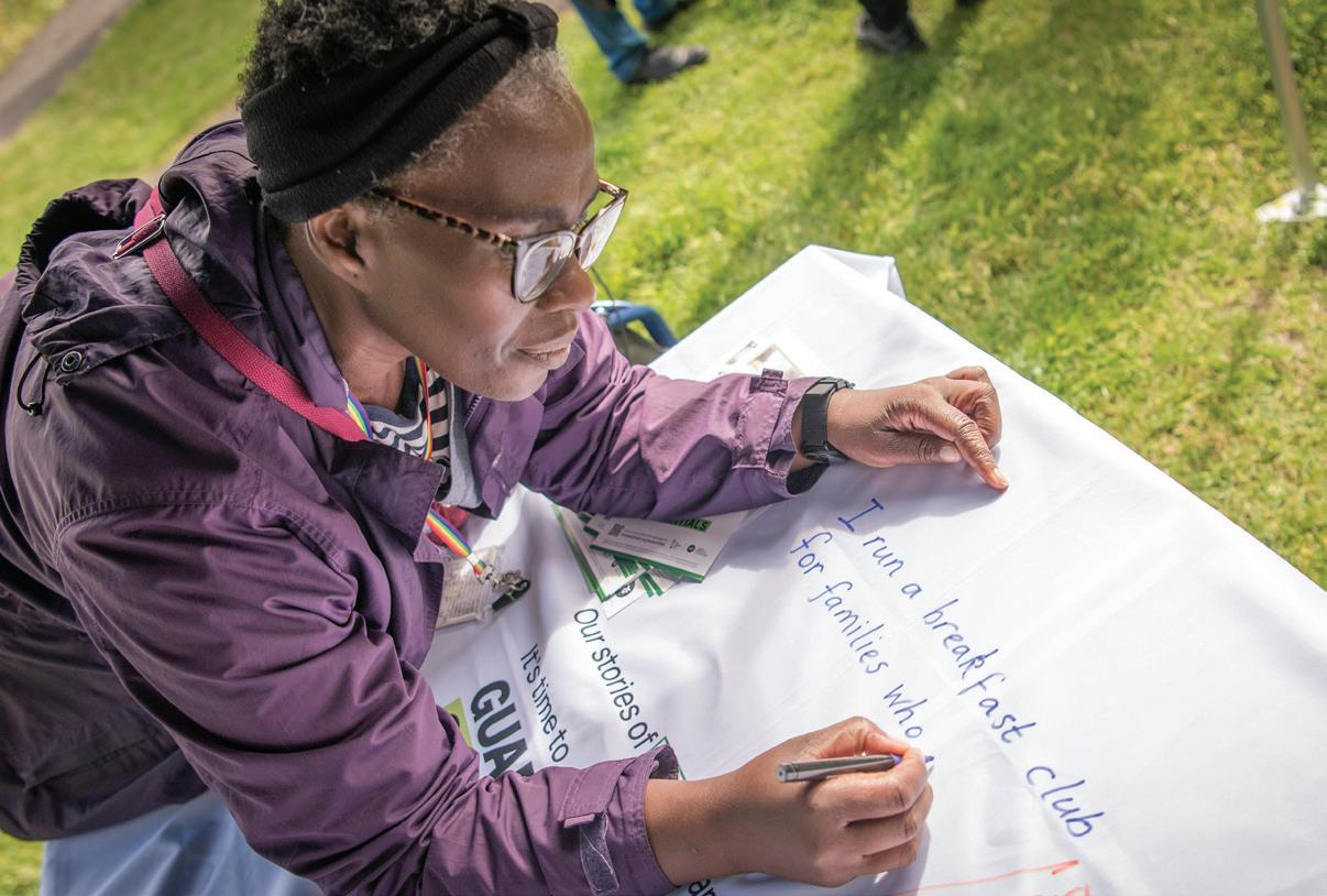 working with. a community of 150 people to help shape strategy and policy at every level, gathering their perspectives and solutions to hardship.