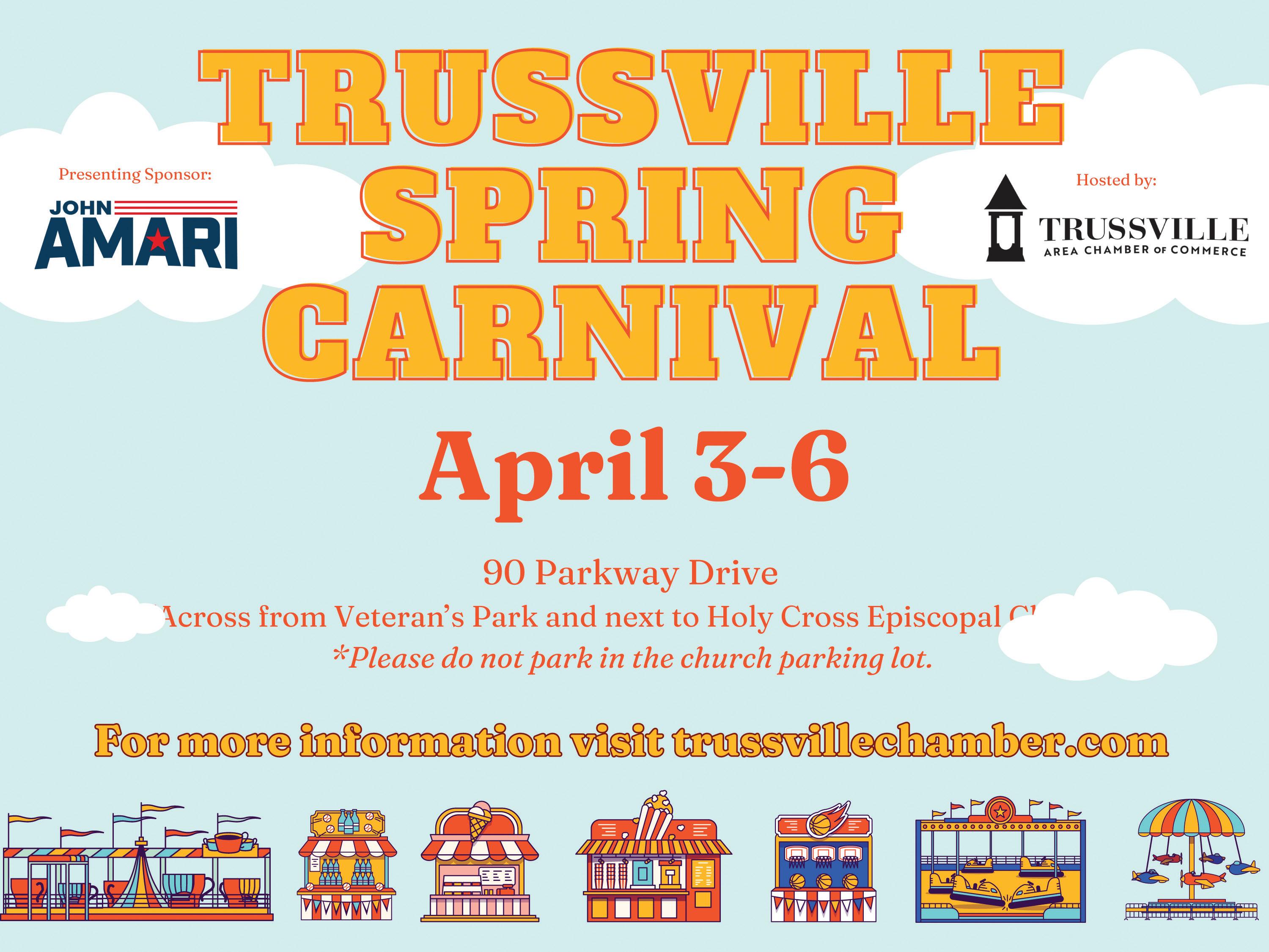 For more information on the carnival, please visit www.trussvillechamber.com, or call the chamber at 655-7535, or follow us on Facebook and Instagram, updates will be posted there.