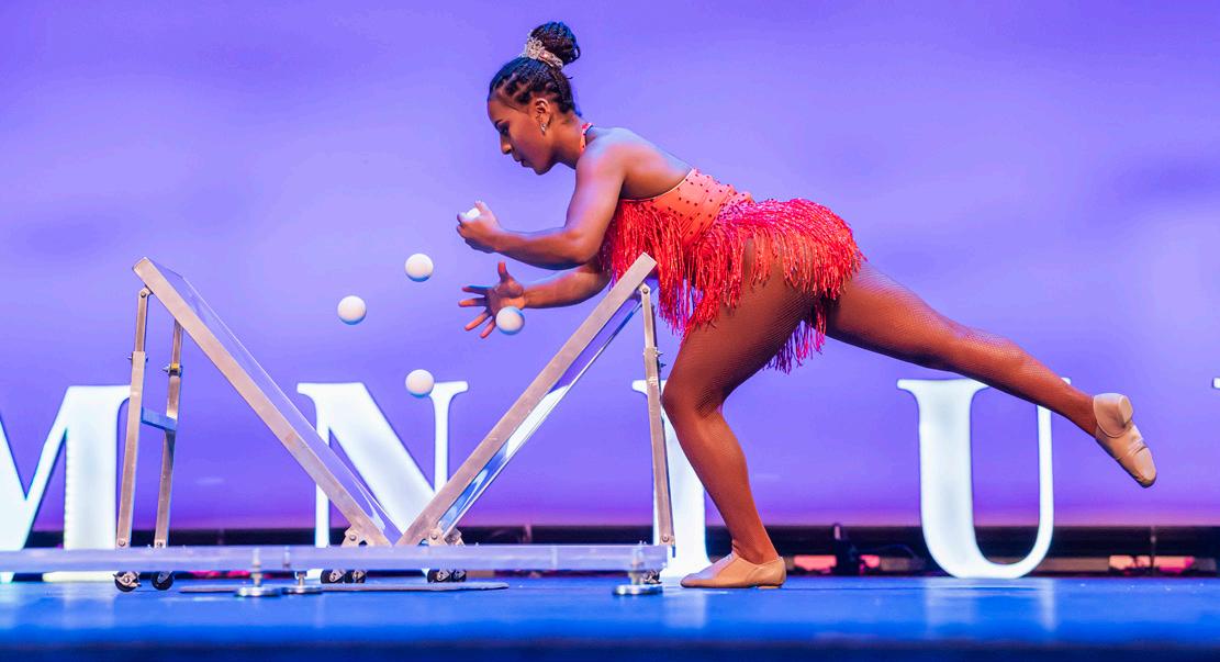In Tersit’s amazing seven-ball bounce juggling act, she will be catching and throwing three balls every second.