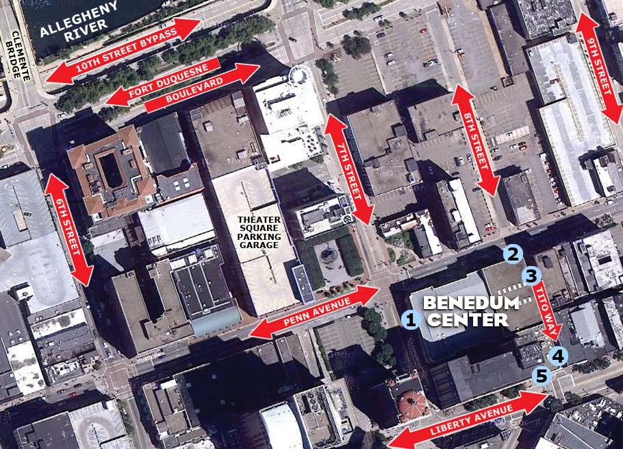 Loading Dock is located on Eighth Street/Tito Way between Penn and Liberty Avenues behind the stage house. This is a one-way street from Penn Avenue towards Liberty Avenue. It is a ‘dog house’ type dock, added on to the back of the facility. Multiple vehicles may require City of Pittsburgh permits and police assistance.