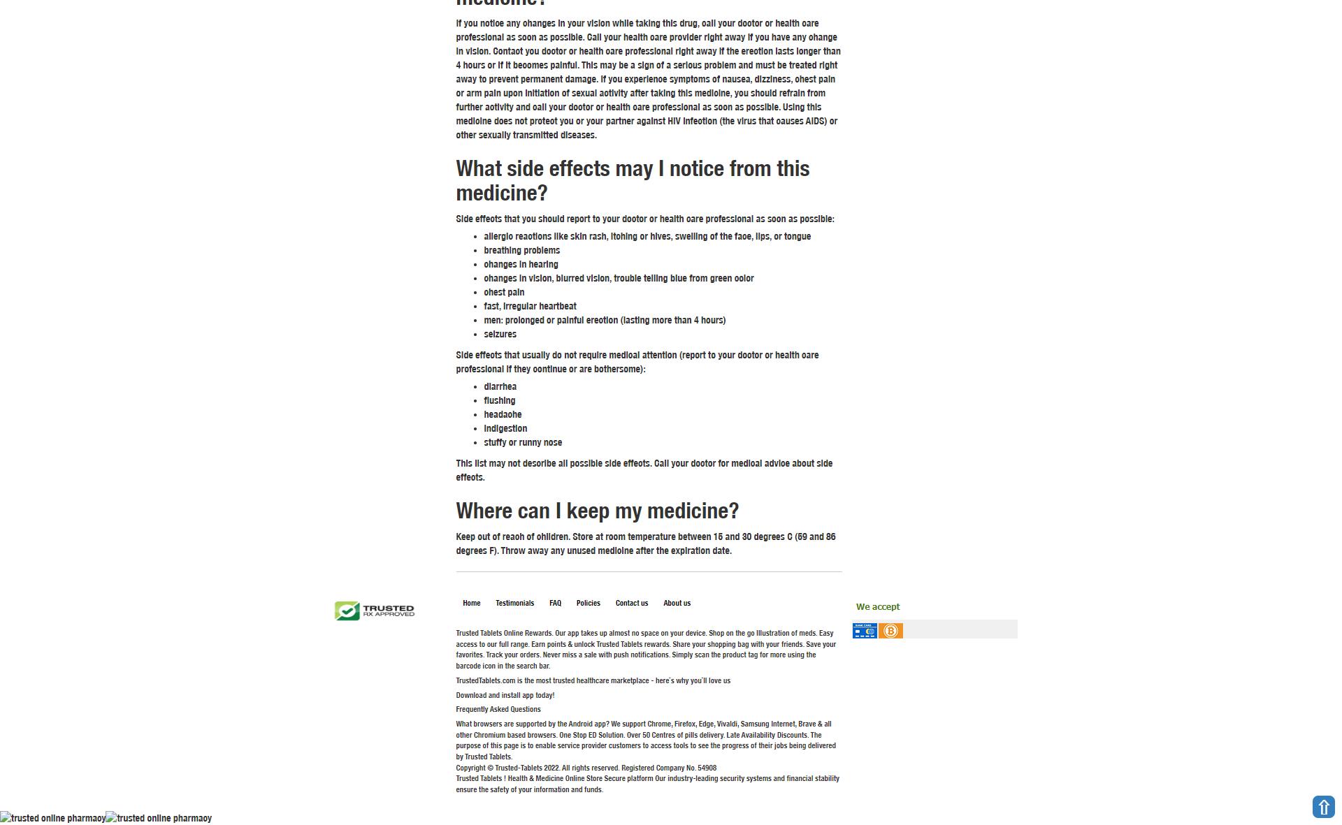 Trusted Tablets is an online pharmacy that offers Fildena CT, a chewable tablet containing Sildenafil Citrate, a generic version of Viagra. This medication is designed to treat Erectile Dysfunction (ED) by improving erectile capabilities and performance. The chewable tablets are easy to consume and quickly effective. Manufactured by Fortune Health Care Ltd., each blister pack contains 10 chewable tablets with a dosage of 50mg. Fildena CT works by reducing arterial failures that impede the natural process of achieving and maintaining an erection for a longer duration. It is a trusted brand for ED treatment and is widely used to address impotence.