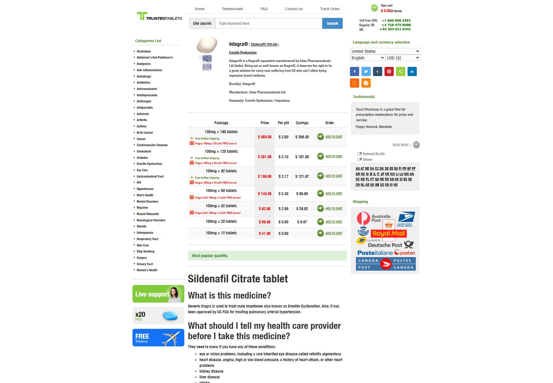 Trusted Tablets presents Intagra, an effective medication for treating Erectile Dysfunction (ED). Manufactured by Intas Pharmaceuticals Ltd. in India, Intagra is an equivalent to Viagra, offering a great solution for men suffering from ED. While not as well-known as Viagra, Intagra provides a reliable and affordable alternative for those who cannot afford expensive brand-name medicines. Trust Intagra from Intas Pharmaceuticals Ltd. to address your ED concerns and improve your sexual health. Choose Intagra from Trusted Tablets for an effective and cost-effective treatment option.