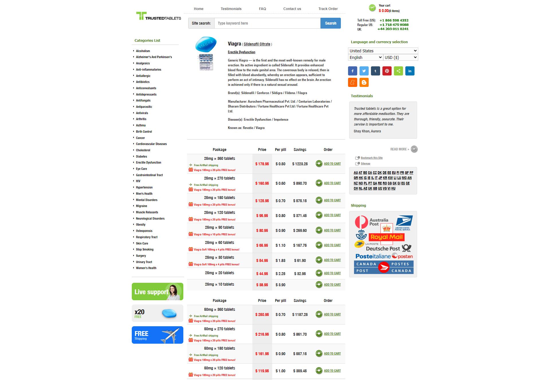 Trusted Tablets is an online pharmacy that offers a range of medications, including Viagra (Sildenafil Citrate), a well-known treatment for Erectile Dysfunction (ED). Viagra, also available as Generic Viagra, contains Sildenafil as its active ingredient. By promoting increased blood flow to the male genital area, it helps relax the cavernous body and enables a satisfactory erection during sexual arousal. It is important to note that Sildenafil does not affect the brain; an erection occurs only when natural sexual stimulation is present. Trusted Tablets provides various brands of Sildenafil, including Cenforce, Sildigra, Fildena, and Filagra, manufactured by reputable companies like Aurochem Pharmaceutical Pvt. Ltd., Centurion Laboratories, Dharam Distributors, and Fortune Healthcare Pvt. Ltd. In addition to treating ED, Sildenafil is also known as Revatio for another medical condition. Choose Trusted Tablets for reliable access to quality ED medication.
