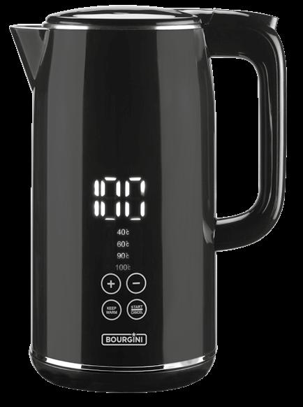 • Deluxe cool touch kettle with stainless-steel inside and matte black plastic housing