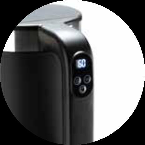 • Digital display in the handle with 5 temperature settings: 60˚, 70˚, 80˚, 90˚, 100˚