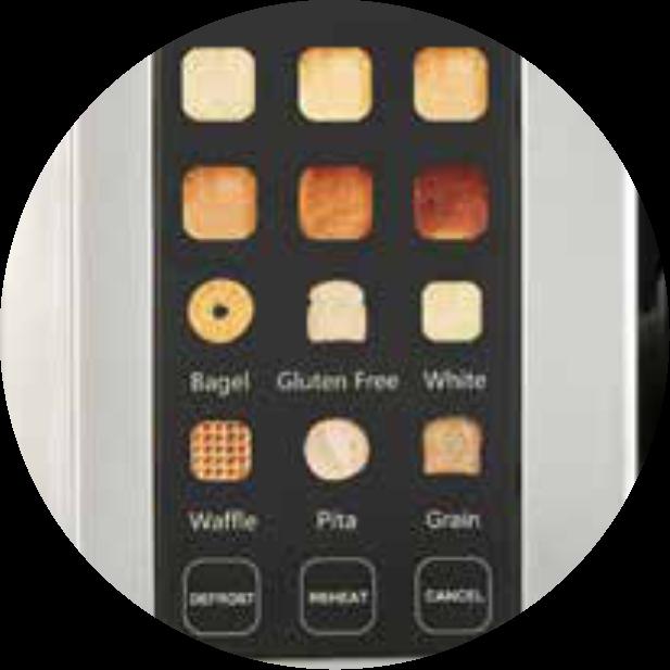 • 6 Preset functions: bagel, gluten free, white, waffle, pita and multigrain