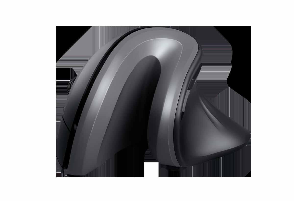 Mouse ergonómico con ángulo vertical óptimo reduce la tensión en la muñeca, hecho con 50% de material reciclado.