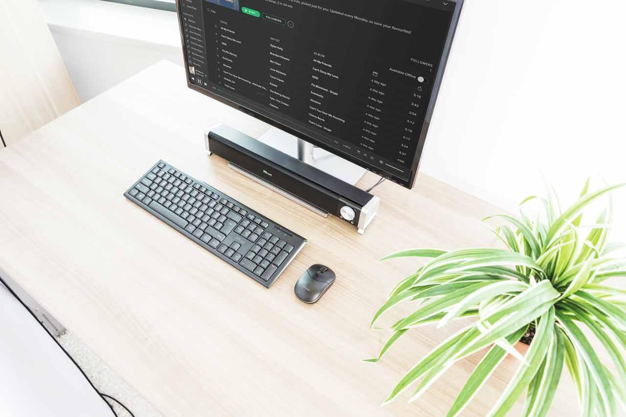 Teclado fino, silencioso e sem fio para trabalhar confortavelmente por horas.
