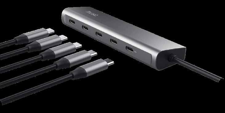 Um hub USB-C de alumínio que adiciona 4 portas USB-C extras e 1 porta de alimentação pass-through ao notebook.