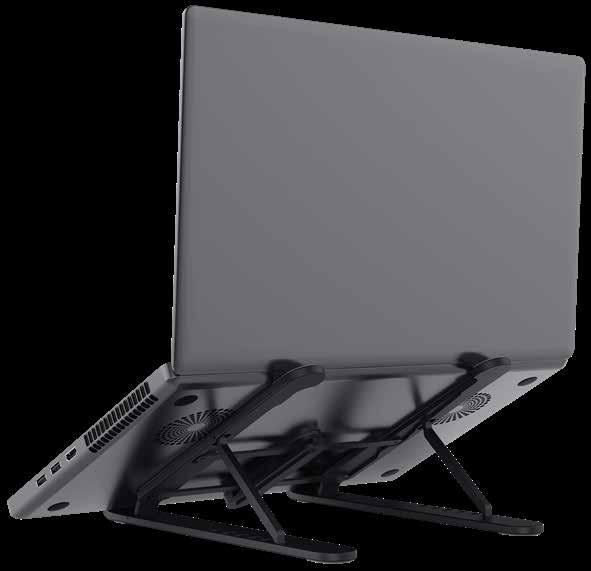 Suporte leve e dobrável para notebooks; permite trabalhar de forma ergonômica em qualquer lugar.