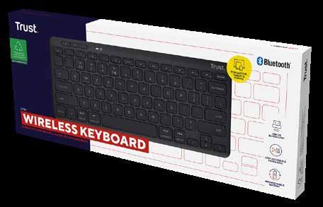 Teclado sem fio compacto e multidispositivo que garante uma conexão fácil e prática; fabricado com materiais reciclados.