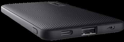 Bateria externa rápida e de alta capacidade para até 92 horas adicionais de funcionamento dos dispositivos (20.000 mAh).