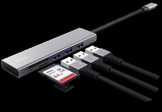 Leitor de cartões de memória rápido (USB 3.2), totalmente compatível, para visualizar e transferir arquivos com rapidez.