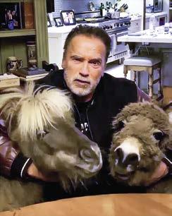 Hij mag dan de Terminator zijn, in zijn keuken is Arnold Schwarzenegger gewoon knuffelbeer. Op schoot: Whiskey, de blonde minipony, en Lulu, de brutale mini-ezel. Sinds 2019 wonen ze bij hem in Brentwood. „Ze zijn als kinderen; ze eisen aandacht en maken me aan het lachen”, zegt Arnold. Lulu is de gangmaker: springt Zoom-meetings binnen, steelt havermoutkoekjes en dringt zich op tijdens interviews. Whiskey is haar kalme tegenhanger. Tijdens corona gingen ze viraal. Arnold in de jacuzzi met sigaar, naast Lulu en Whiskey. Inmiddels zijn ze niet alleen zijn huisgenoten, maar ook zijn personal trainers. Na zijn hartoperaties vertelde hij zelf: „Ze houden me net zo fit als een uurtje in de sportschool.”