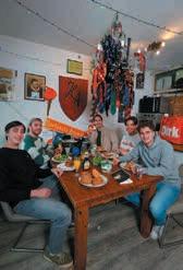 Een traditie in het Rotterdamse huis is dat een logé die voor het eerst is blijven slapen met de desbetreffende huisgenoot pannenkoeken bakt. ,,Zo kunnen we kijken of iemand gezellig is en bij ons huis past’’, zegt Damien. En wie dan het vaakst pannenkoeken bakt? ,,Igor!’’, roepen de andere huisgenoten lachend.
