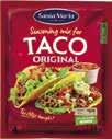 Met een tafel vol Santa Maria producten kan iedereen zijn eigen favoriete Taco samenstellen. Organiseer in een handomdraai een smakelijke Taco avond! Vul bakjes met groenten, vlees en vis gekruid met onze nieuwe Taco Seasoning Mix, en laat iedereen een taco naar smaak vullen. En top ze af met Santa Maria’s taco saus.