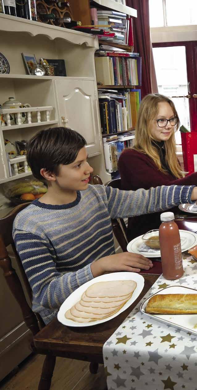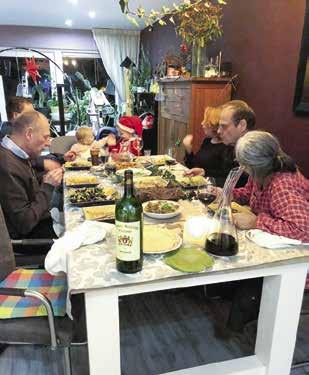 Dordrecht gaat op eerste kerstdag naar de kerk en geniet daarna van een uitgebreide kerstbrunch. ,,We houden enorm van lekkere brunchbroodjes met hartige salades en onze favoriete pindasoep mag ook niet ontbreken!”, vertelt Hannah (16) enthousiast. ,,Maar mijn zelfgemaakte pannenkoekjes met fruit (zie pagina 44) vallen ook altijd goed in de smaak”, voegt ze toe.