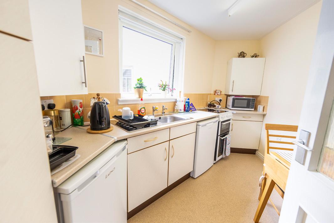 Dalrymple Court is a bright and sunny Supported Development, combining independent living with some support, and a warm and friendly environment. There are 17 one-bedroom flats and 21 studio flats, spread over three floors with a lift for accessibility. Each flat has fitted kitchen cabinets with space for white goods (customer’s own) and a shower wet room.