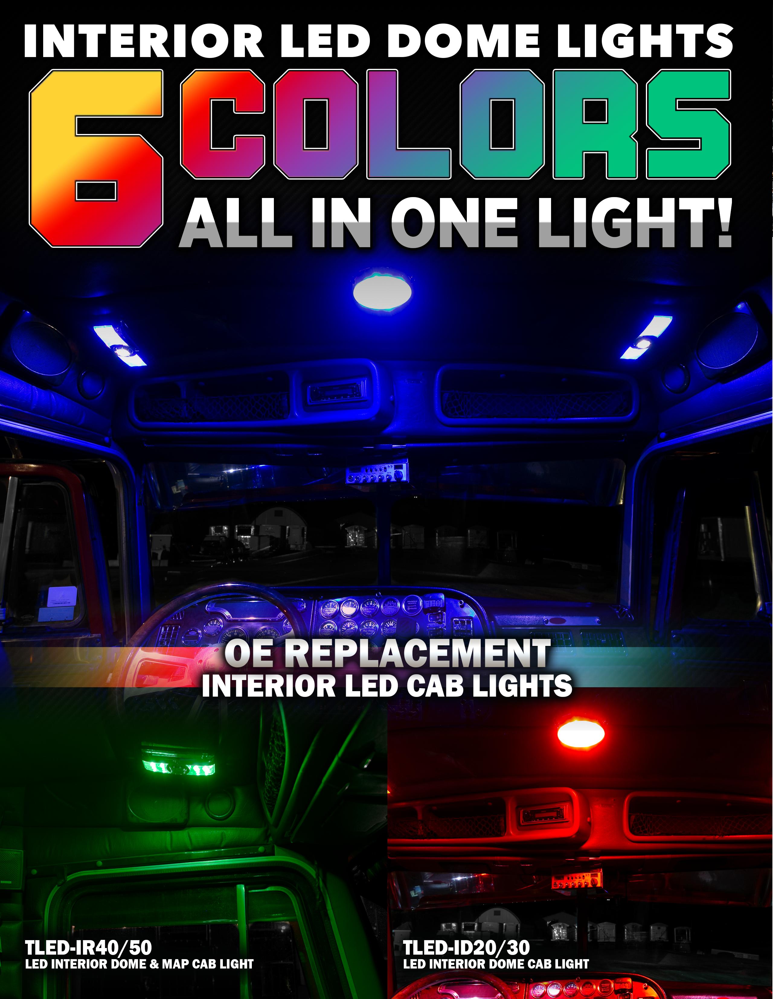 LED INTERIOR PROJECTOR DOME CAB & SLEEPER LIGHTING KIT FOR KENWORTH T680 & T880 MODELS 2 x TLED-IK60 6-COLOR LED INTERIOR DOME & MAP CAB LIGHTS 3 x TLED-IK70 6-COLOR LED INTERIOR DOME SLEEPER LIGHTS OUTFITS THE INTERIOR LIGHTING OF YOUR TRUCK TLED-IK80
