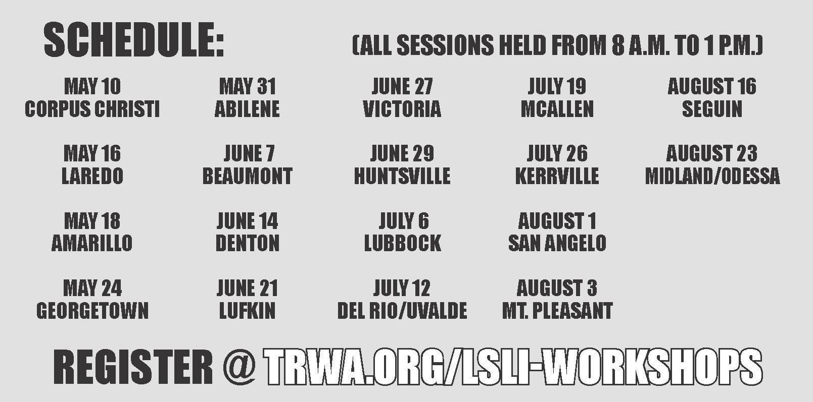 Workshops will be held from 8 a.m. to 12 p.m., with an hour allotted for one-on-one help following the session. The workshops are free, but we ask that you register in advance at trwa.org/lsli-workshops.