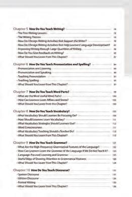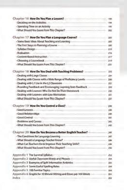 What Should Every EFL Teacher Know? is a must-have book which covers the most important information that a teacher of English as a foreign language should know. It focuses on practical issues such as how to teach listening, speaking, reading, and writing; how to teach pronunciation, spelling, grammar, vocabulary, and discourse; how to design lessons and courses; and how to solve teaching problems like large classes, a wide range of proficiency in a class, unmotivated students, and misbehaving students.
