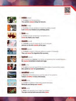 - Clear, easy-to-understand definitions and examples for all target words