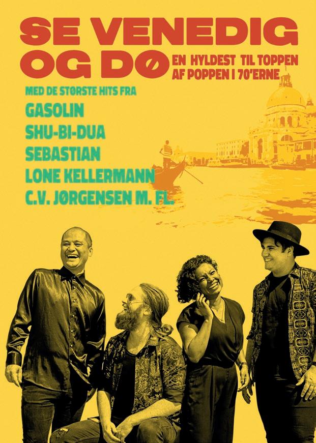 I Se Venedig og dø kan man se frem til at høre en lang række af de største og mest elskede danske 70’er hits fra både Gasolin, Shu-BiDua, Sebastian, C.V. Jørgensen, Lone Kellermann, Rugsted & Kreutzfeldt m.fl. Samtidig kommer vi bag scenen og hører historierne om, hvad der egentlig skete dengang i 70’erne, hvor kampen mellem Gasolin og Shu-Bi-Dua om tronen var hård og bitter.