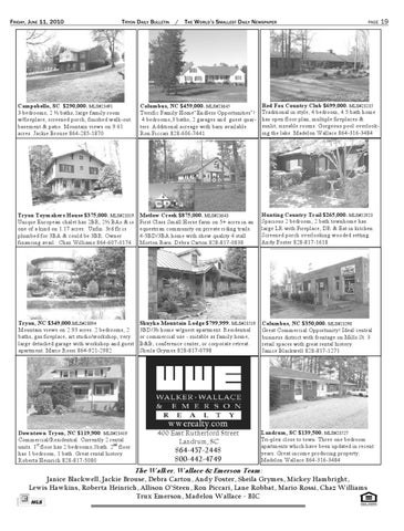 Campobello, SC $290,000. MLS#23491 3 bedrooms, 2 ½ baths, large family room w/fireplace, screened porch, finished walk-out basement & patio. Mountain views on 9.61 acres. Jackie Brouse 864-285-1870