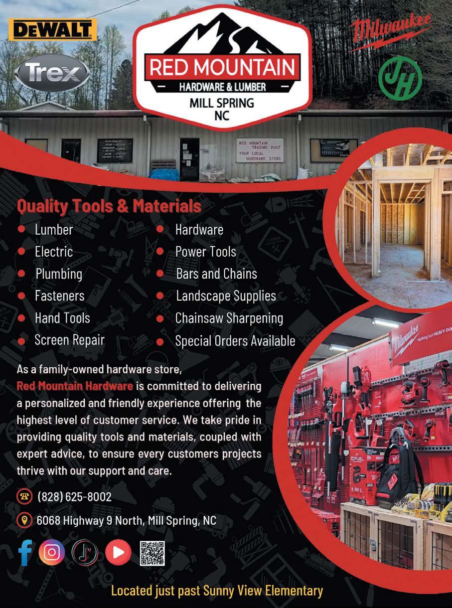 Red Mountain Hardware highest level of customer service. We take pride in providing quality tools and materials, coupled with