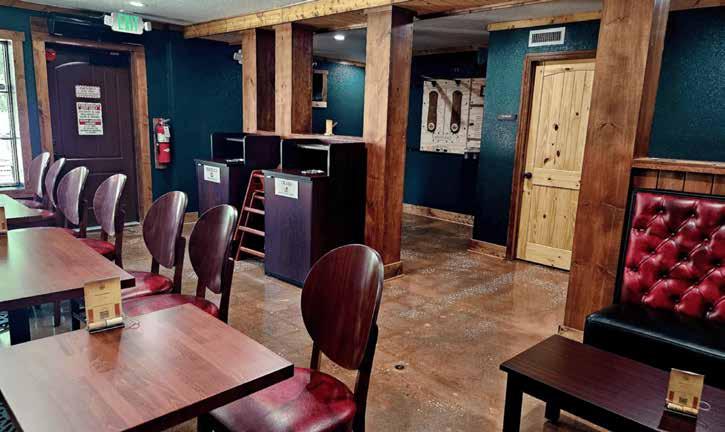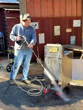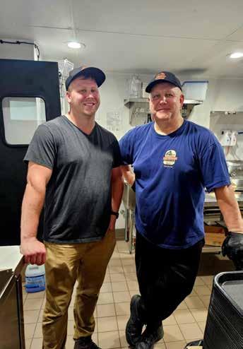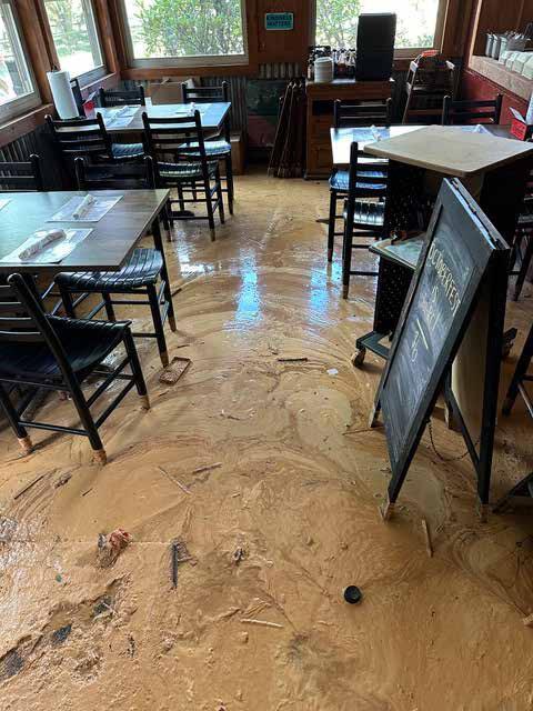 mounds—in some areas up to eight feet—of mud. The mud also crushed the condensers for their walkin cooler and freezer, and it pushed the storage trailers next to the main building out toward the road. A tree even fell on the roof and knocked off the kitchen exhaust hood, leaving a gaping hole in the ceiling that allowed the torrential rains of Helene to enter the building. Some people would have looked at this devastation and thrown in the towel, calling an excavation crew to tear down the restaurant. Bri and Tom,