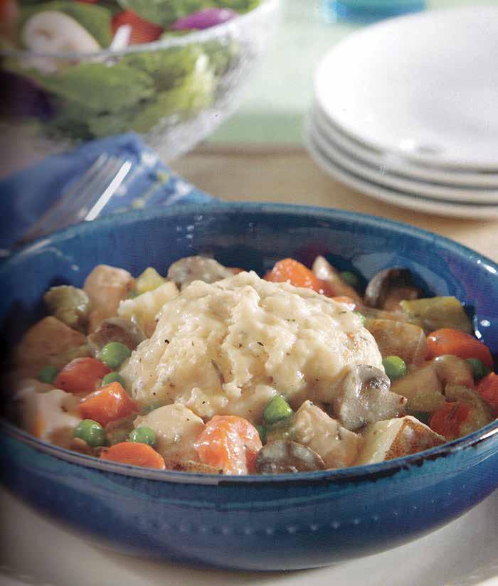 3. Combine baking mix, remaining 1/4 teaspoon basil, 1/4 teaspoon rosemary and 1/8 teaspoon tarragon in small bowl. Stir in milk to form soft dough. Add dumpling mixture to top of stew in 4 large spoonfuls. Cook, uncovered, 30 minutes. Cover; cook 30 to 45 minutes or until dumplings are firm and toothpick inserted in center comes out clean. Serve in shallow bowls.
