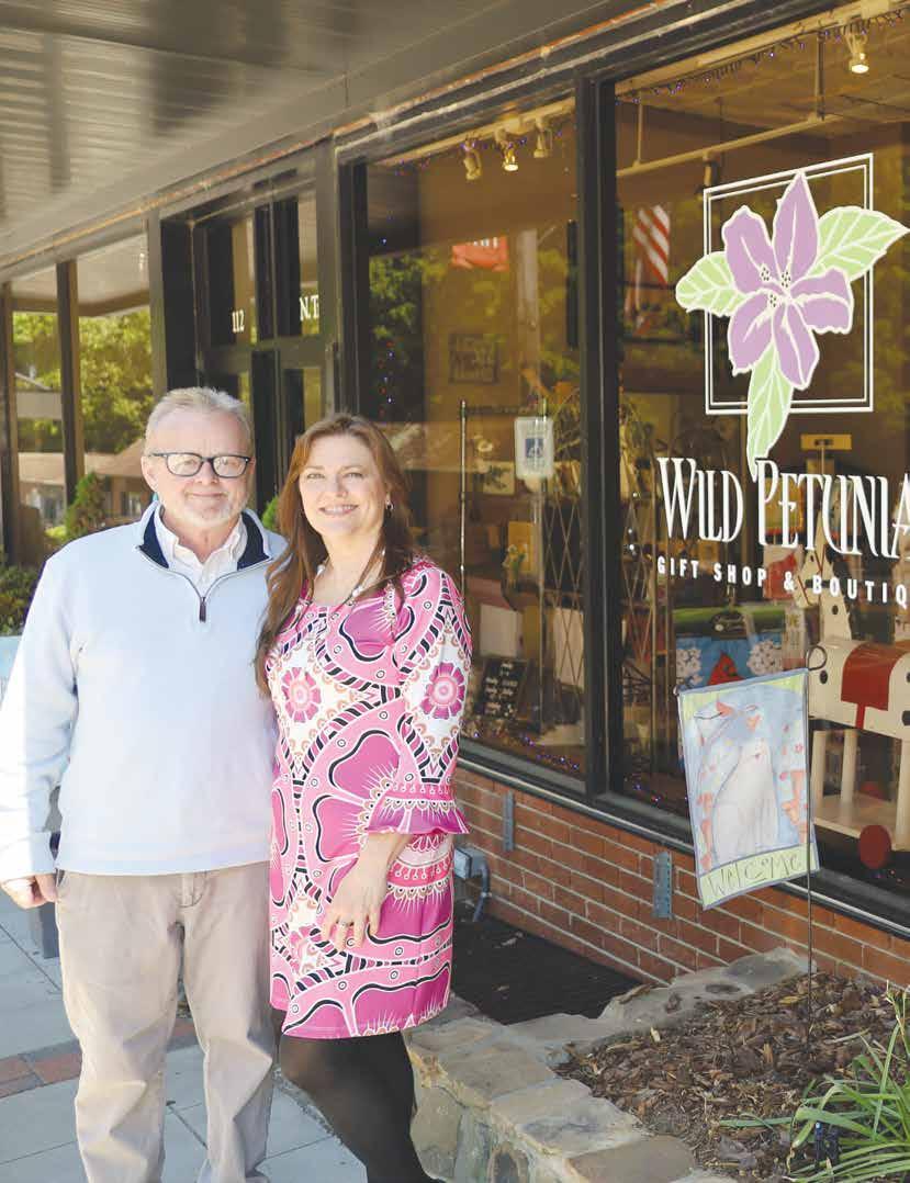 We also catch up with Stuart and Connie Cook, owners of Wild Petunias Gift Shop and Boutique in downtown Tryon. Visitors and locals alike can “find their happy here,” as they peruse the shop’s inventory for that perfect gift. They even offer pottery, art and soaps from talented local artisans.