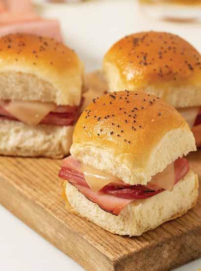 Cover ham and cheese stacks with top halves of rolls. Drizzle butter mixture over tops of rolls.