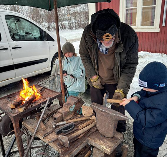 • Lokale smeder demonstrerer, og tar med unga på smiing.
