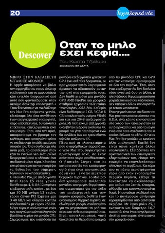 ΜΙΚΡΟ ΣΤΗΝ ΚΑΤΑΣΚΕΥΗ ΜΕΓΑΛΟ ΣΕ ΑΠΟΔΟΣΗ Η Apple αποφάσισε να βάλει την σφραγίδα της στους desktop υπολογιστές και να παρουσιάσει κάτι εντελώς διαφορετικό από αυτό που φανταζόμαστε όταν ακούμε desktop υπολογιστή.« Όταν ξεκινήσαμε να σχεδιάζουμε τον Mac Pro επόμενης γενιάς, εξετάσαμε όλα όσα συνθέτουν έναν επαγγελματικό υπολογιστή, χώρο αποθήκευσης, δυνατότητες επέκτασης, επεξεργαστική ισχύ και μνήμη. Έτσι, από την αρχή, αποφασίσαμε να βρούμε τον καλύτερο, πιο προηγμένο τρόπο να σχεδιάσουμε το κάθε επιμέρους στοιχείο του. Όταν συνθέσαμε όλα αυτά μαζί, το αποτέλεσμα ήταν κάτι το εντελώς νέο. Κάτι ριζικά διαφορετικό από ο,τιδήποτε έχει σχεδιαστεί μέχρι τώρα. Κάτι τόσο ισχυρό που έρχεται να ανατρέψει τα δεδομένα του σήμερα», δηλώνουν οι κατασκευαστές. Ο νέος Mac Pro, με επεξεργαστή Intel Xeon E5 νέας γενιάς διατίθεται με 4, 6, 8 ή 12 πυρήνες επεξεργαστικής ισχύος , με έως και 30 MB μνήμη L3 cache, εύρος ζώνης PCI Express gen 3 40 GB/s και οδηγίες κινητής υποδιαστολής με εύρος 256-bit. Μέχρι τώρα, η υπολογιστική ισχύς των επαγγελματικών υπολογιστών βασιζόταν κυρίως στη μονάδα CPU. Σήμερα όμως, που η απόδοση της