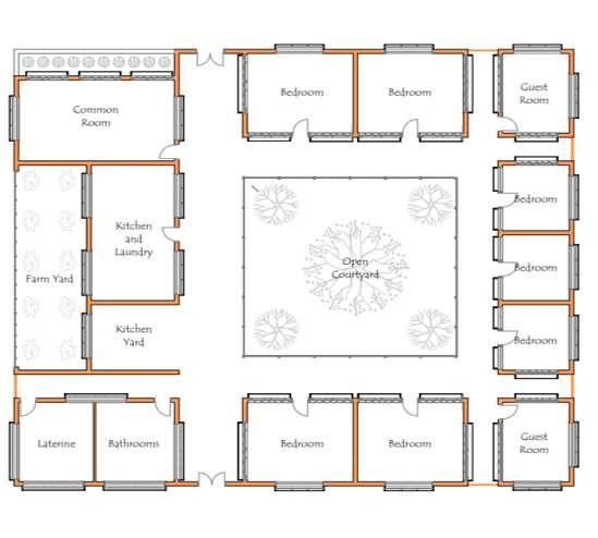 2. Organization of houses around an open space/garden.
