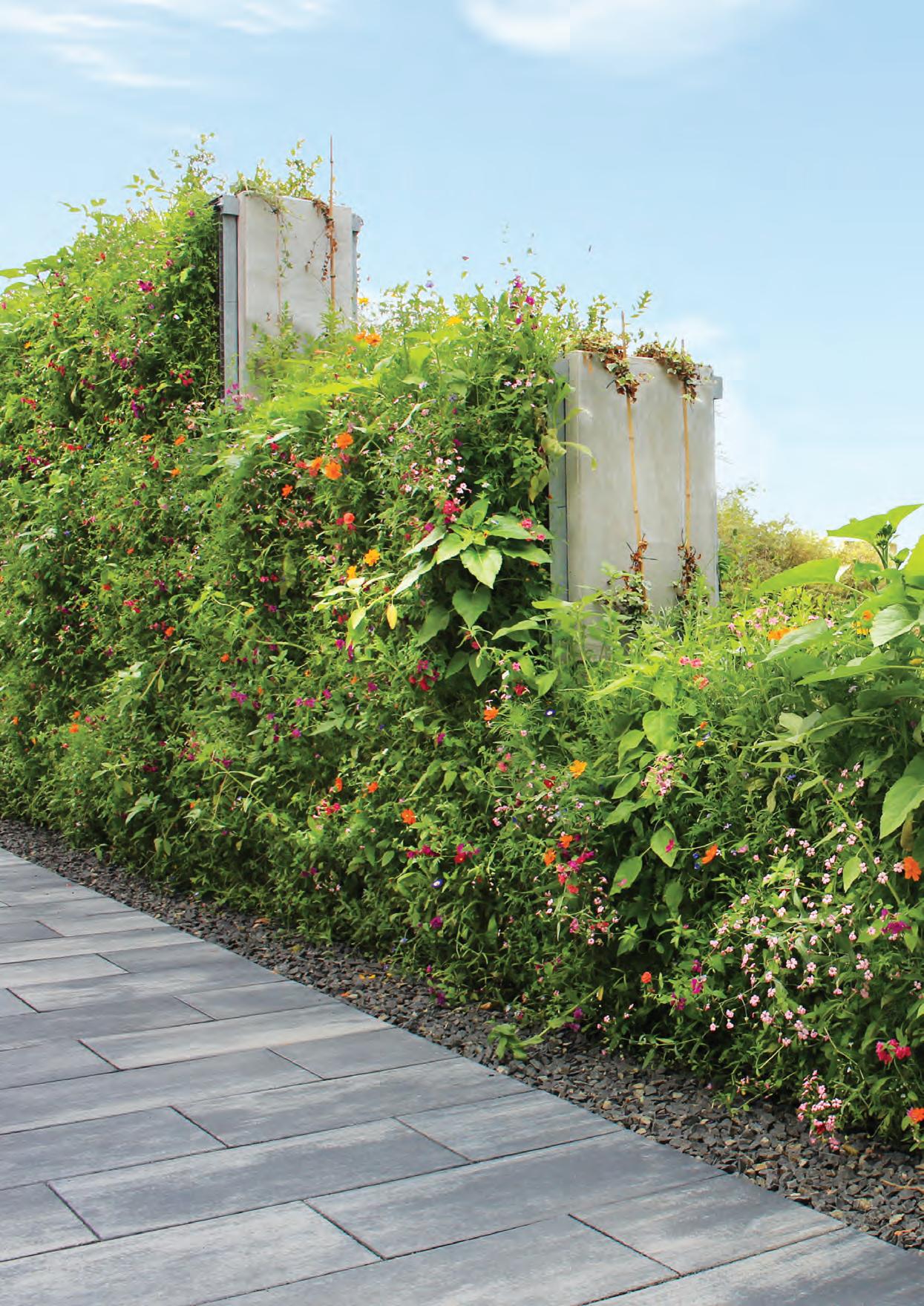 Dem Problem der Versiegelung von Flächen begegnen wir mit wasserdurchlässigen und wasserspeichernden Belagssystemen, so wie sie in zukunftsweisenden Schwammstädten zum Einsatz kommen. Dabei entwickeln wir nicht nur Lösungen in der Horizontalen, sondern haben mit der GRÜNWAND eine innovative, begrünte Fassade entwickelt, die biodiverse Lebensräume schafft und den natürlichen Wasserkreislauf erhält.