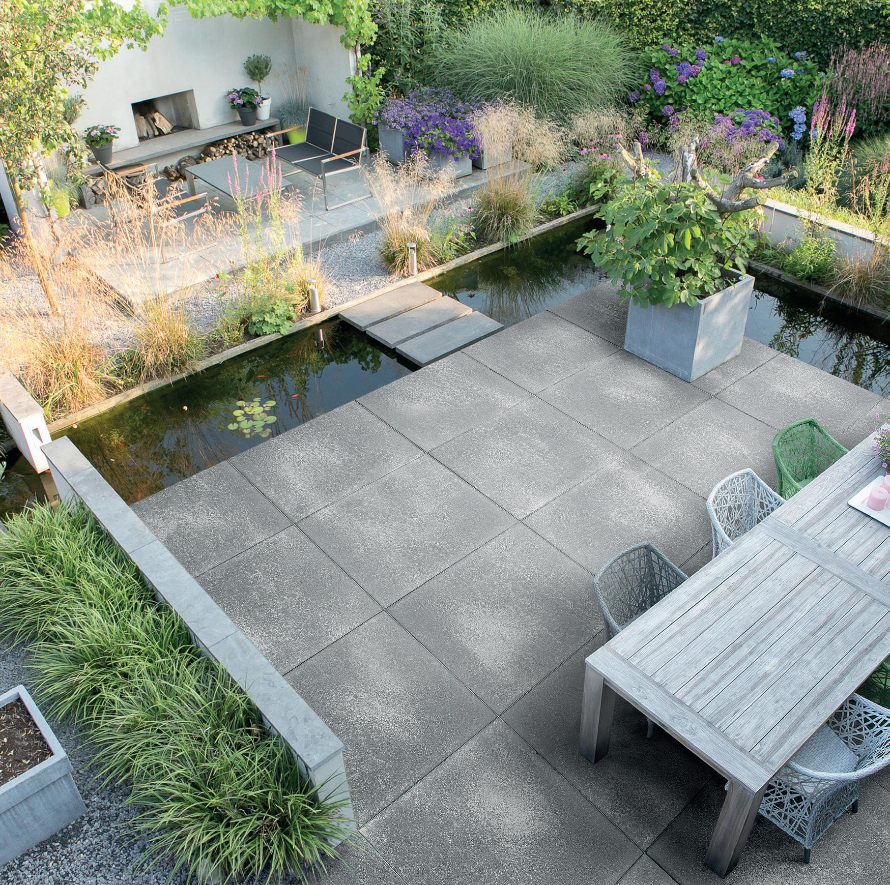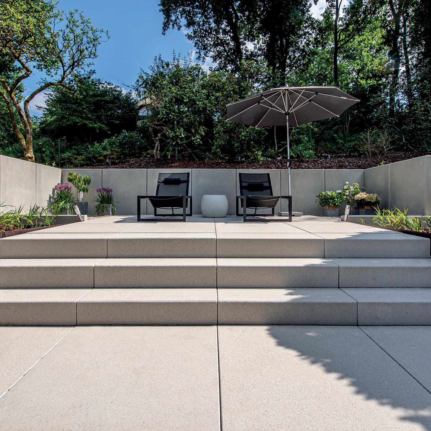 Auch als Schwimmbadrandplatte und Winkelstufe erhältlich, siehe Seite 22-25.