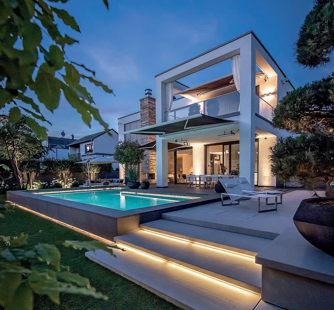 Setzen Sie Ihren Garten in Szene – mit integrieren Spots und LED-Lichtleisten in Gestaltungselemente und Stufen. Dies schafft Tiefe und Eleganz und ganz nebenbei bietet es Ihnen und Ihren Gästen nützliche Orientierungshilfe bei Nacht und schafft eine beruhigende Atmosphäre. Aussparungen können auf Wunsch für individuelle Lichtsysteme gefertigt werden.