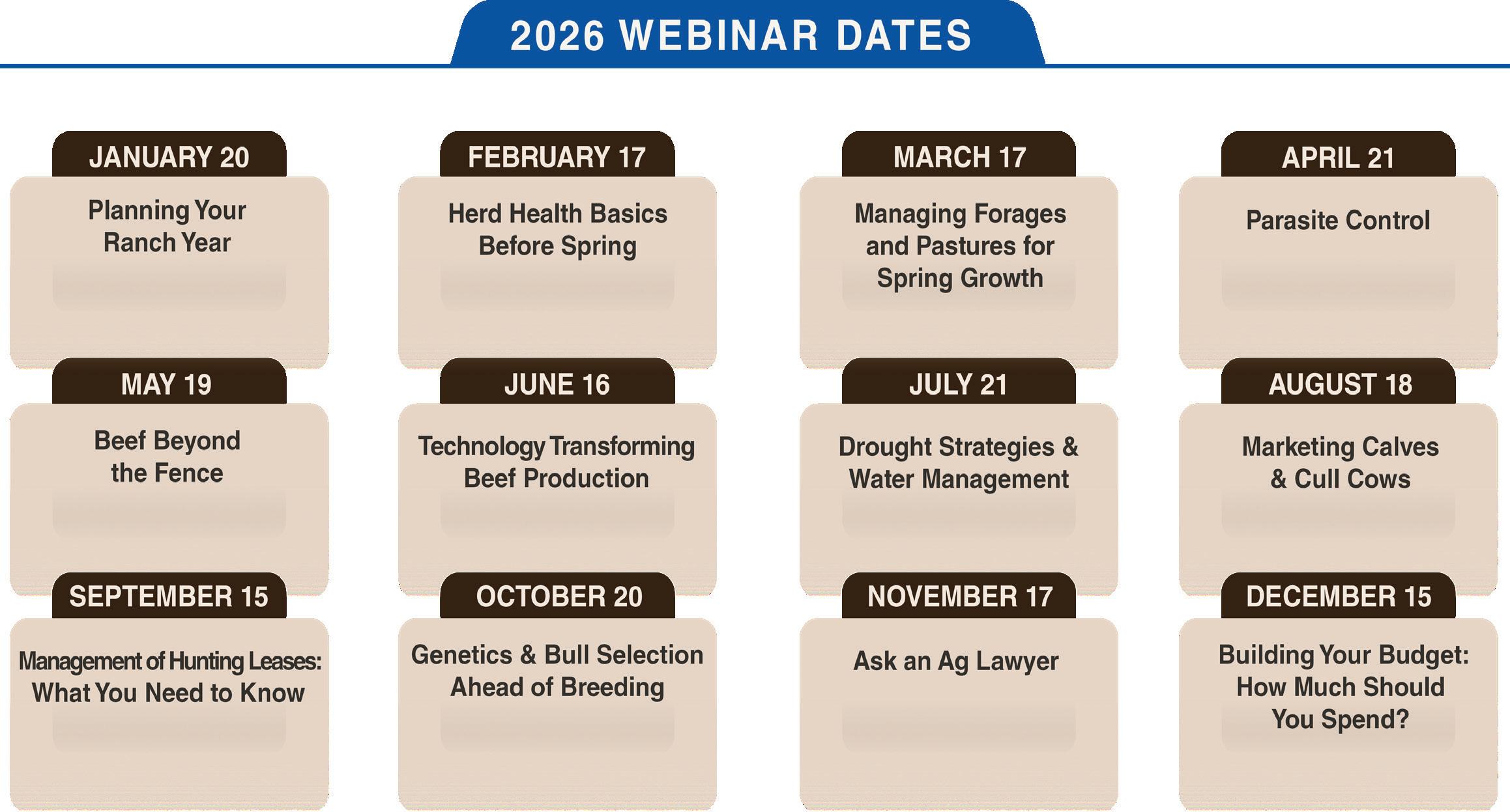 Ranching 101: Managing Forages and Pastures for Spring Growth Where: Online When: 1 p.m.