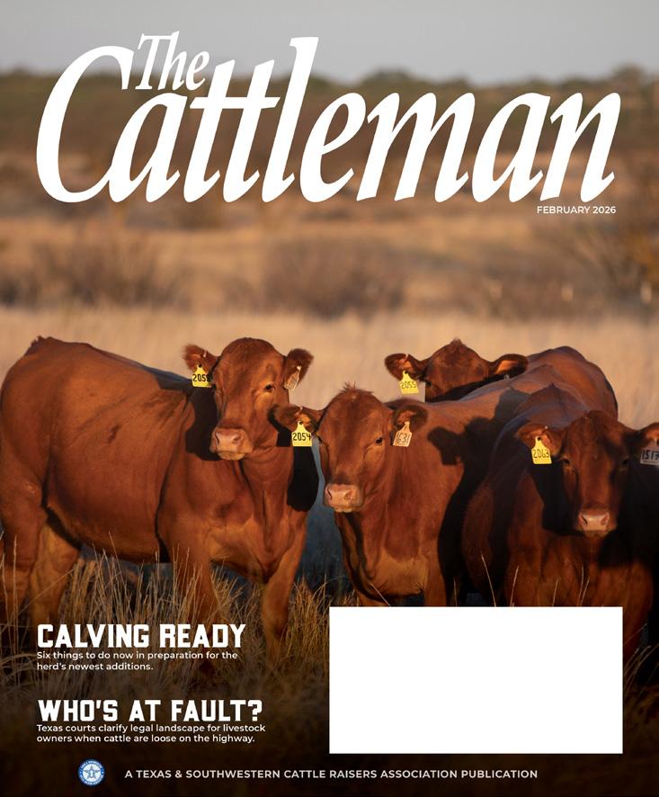 Also in this issue of The Cattleman, we focus on practical steps cattle raisers can take to get ready for their herd’s newest additions. Our calving readiness feature outlines six key actions to tackle, from facility checks to herd health considerations, helping set both cows and calves up for a strong start later this spring.