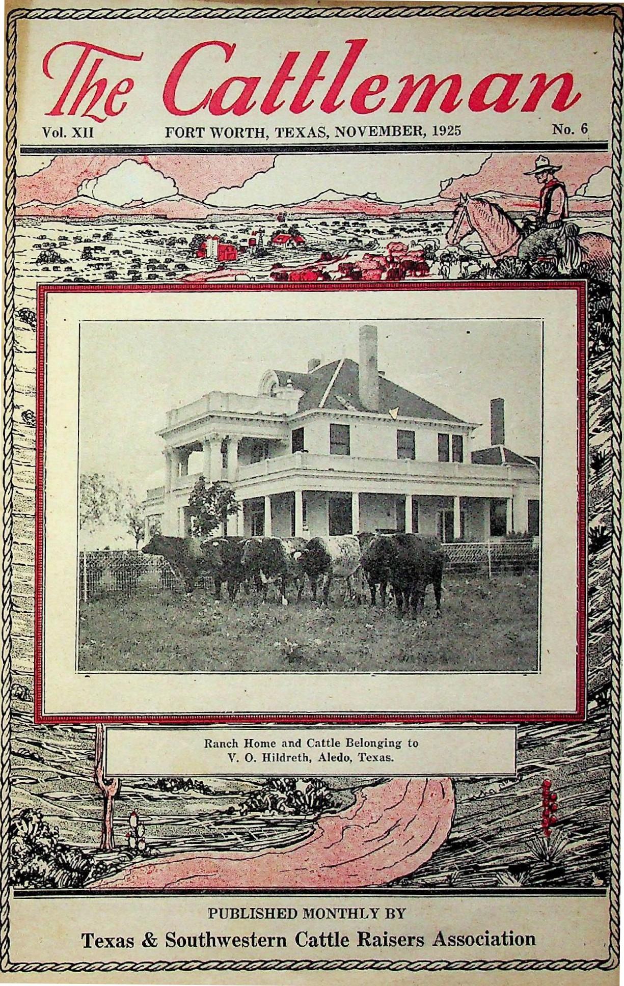 Pictured on the cover is a ranch home and cattle belonging to V.O. Hildreth, Aledo. T C