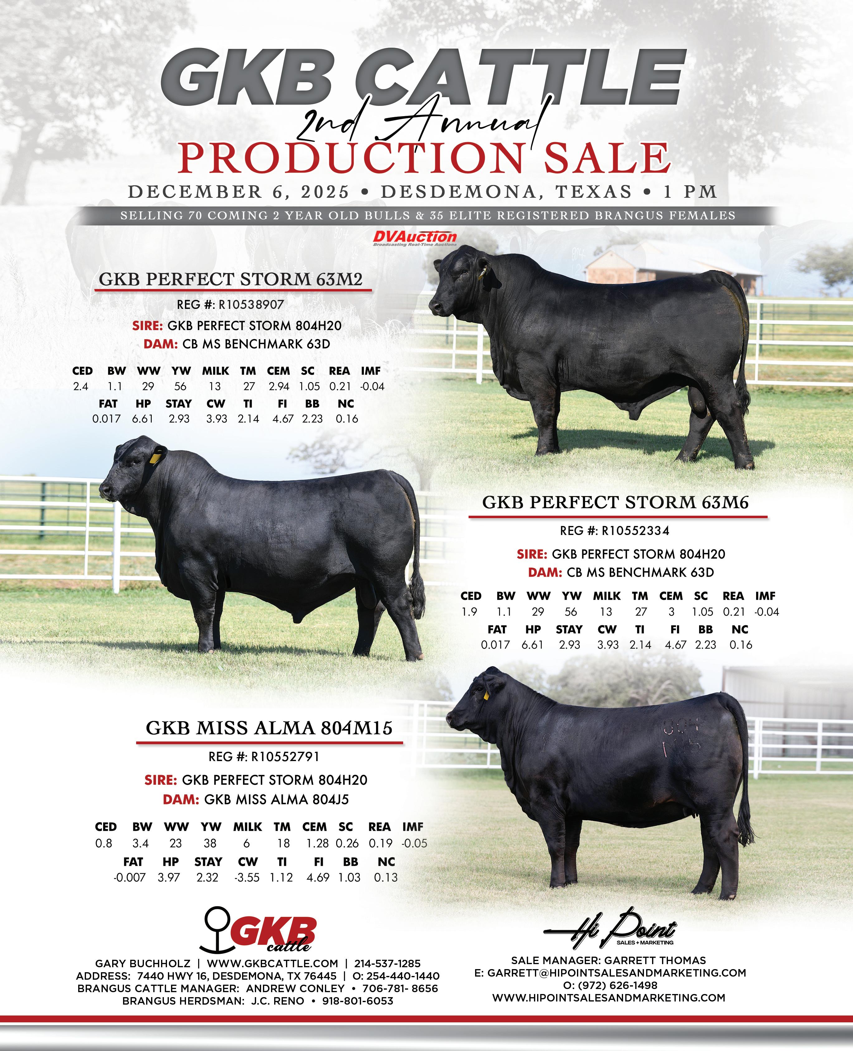 GKB Cattle: Brangus Production Sale Where: Desdemona When: 1 p.m.