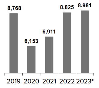 Beef sales by volume and value at foodservice saw a decline from 2019 –2020 but has since been rebounding to pre-COVID levels.
