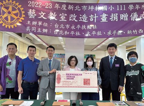 今年贊助藝文教室的改建,見證學校經由校長及老師們 的努力,帶給學生更好的學習環境及技能,感謝3481 地區、第八分區友社和平社、太平社、承平社及D3501 新竹西南扶輪社共同贊助,一起打造具有茶鄉文化的坪 林國小。
